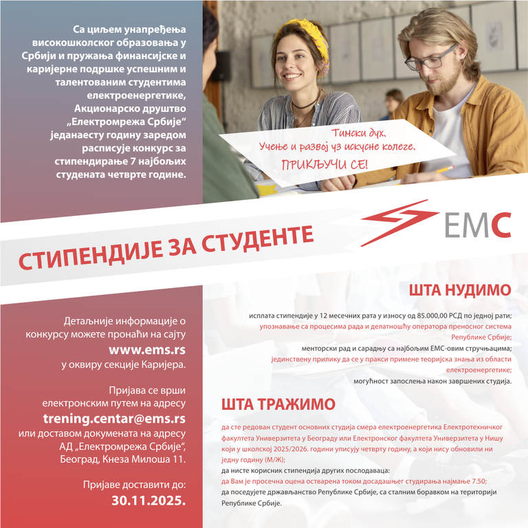 И ове године Електромрежа Србије подржава најбоље студенте електроенергетике.