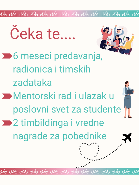 - Предузетнички дух: Посете компанијама, рад на пословним пројектима и истраживање процеса покретања бизниса развијају предузетничке вештине и припремају учеснике за лидерство у пословном свету.